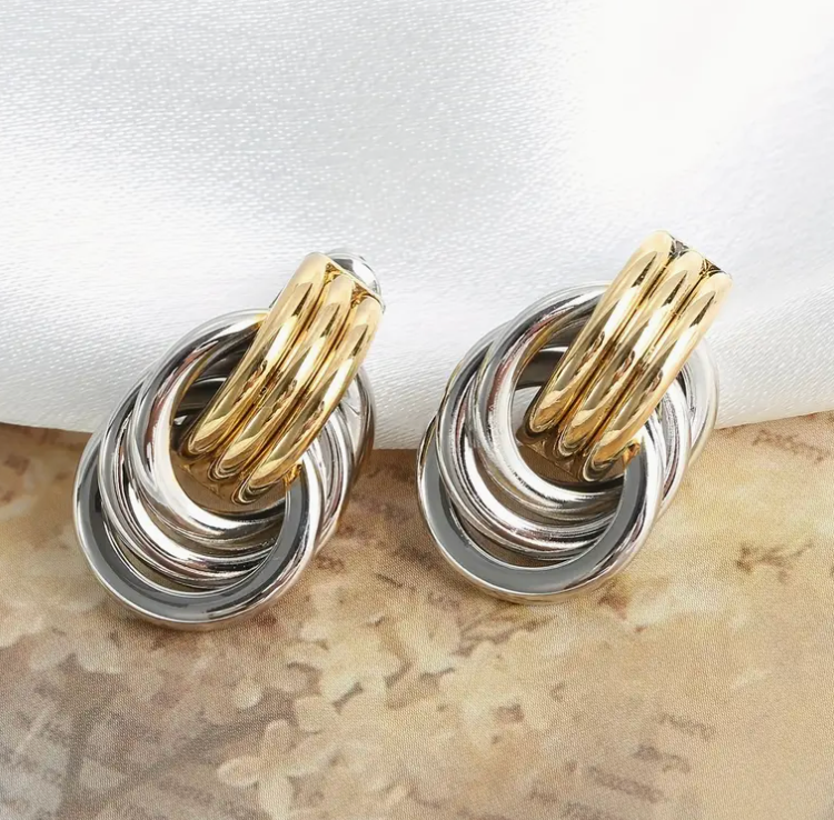 Add a modern touch to your jewelry collection with the Dual Charm Hoop Studs, featuring a sleek two-tone gold and silver design. These double-layered geometric earrings offer a bold, versatile look that transitions easily from day to night. Whether dressing up for an event or keeping it casual, these hoop studs are the perfect accessory to elevate any outfit with their contemporary style and unique design.